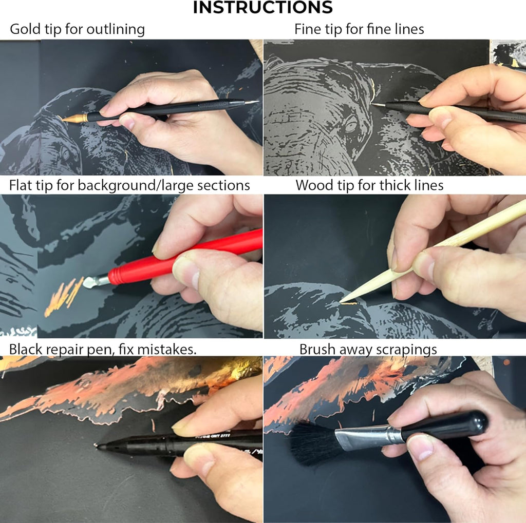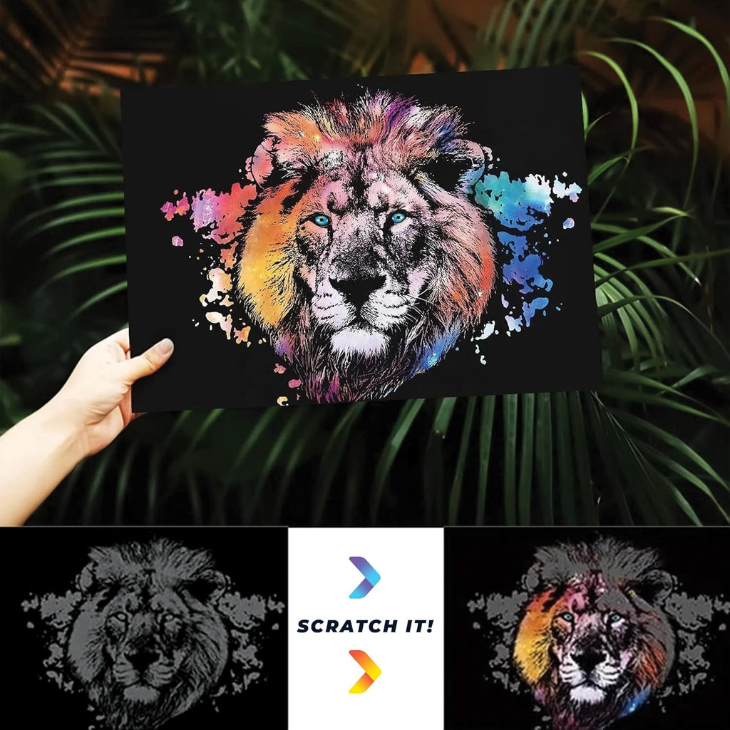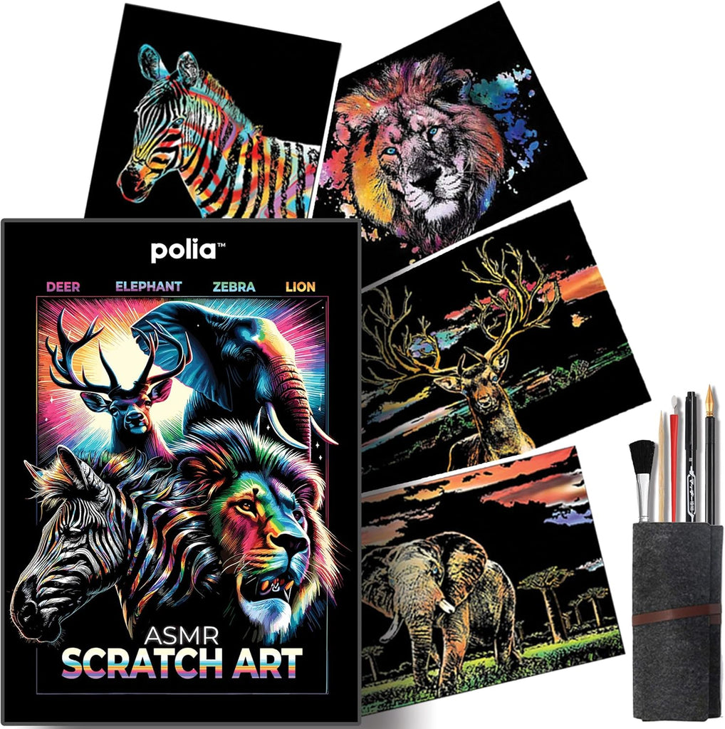 ASMR Scratch Art Set (Satisfying) - Animals + Freestyle + Toolkit - Large 16x11 inches (Relaxing)